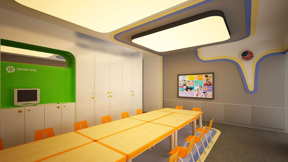 a.教室牆壁統一爲淡色系(少兒教室可以布置的活潑一些)。