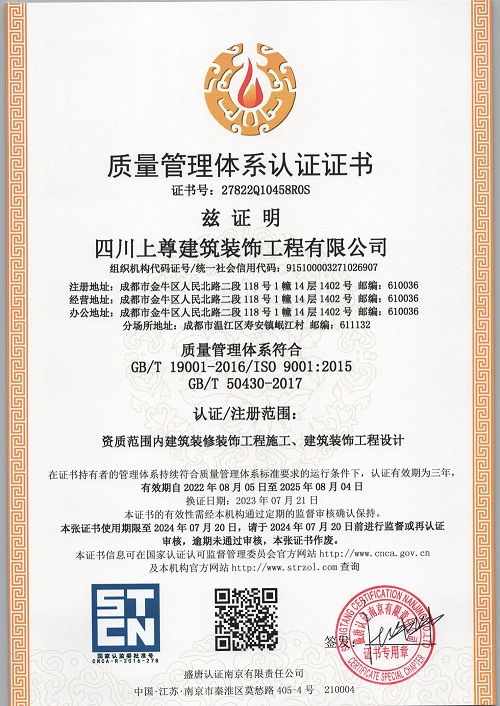 四川上尊建築裝飾工程有限公司(原呈上設計事(shì)務所),成(chéng)立于2015年,現員工200餘人(中高級職稱30人),主營市政建築工程、路橋工程、建築裝飾裝修工程、裝飾設計、機電安裝工程和園林綠化工程;公司于2014年投入2000萬購買金牛萬達廣場甲級寫字樓C座1500平米用于辦公場所,注冊資金5000萬,公司是成(chéng)都(dōu)市建築裝飾協會(huì)常務理事(shì)單位,并獲得四川省住建廳頒發(fā)的建築裝修裝飾工程專業承包壹級資質和建築裝飾工程設計專項乙級資質;2015年榮獲四川省“消費者口碑點贊企業”稱号,2016年加入四川省川聯企業商務促進(jìn)會(huì)理事(shì)單位,2017年榮獲“四川省愛心企業”稱号,2018年榮獲“四川匠心成(chéng)就(jiù)企業”稱号,2019年榮獲“最具影響力企業”稱号,2021年榮獲“公益愛心企業”,2023年獲得“時(shí)代影響力企業”稱号。