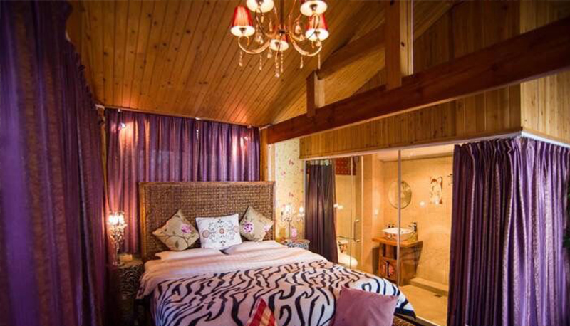主題情侶房,玫瑰花瓣鋪在床單上,浴室用玫瑰花泡澡,處處熏著(zhe)玫瑰花香,精緻的家具擺件都(dōu)營造出一股浪漫唯美的氛圍。