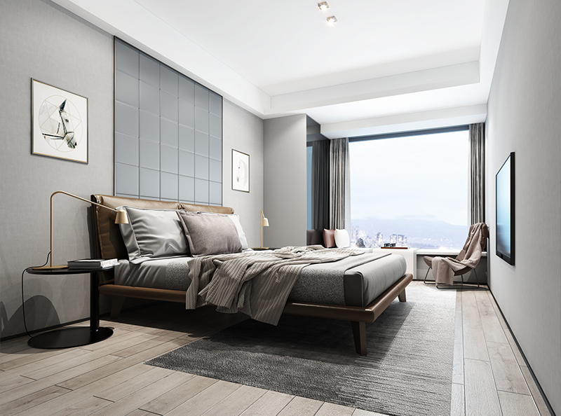 2:簡單陳設的卧室,反而更能(néng)給人舒心的感覺,原木色床身與木地闆顔色統一,及地的本白色窗簾遮光效果極好(hǎo),能(néng)夠提供一個安穩的睡眠空間。