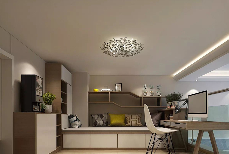 9.素雅的米黃和淺白,營造一種(zhǒng)甯靜的閱讀休閑氛圍。吊頂的花瓣式樣式是整個空間的亮點,給方方正正的空間布局增加了一抹亮色。