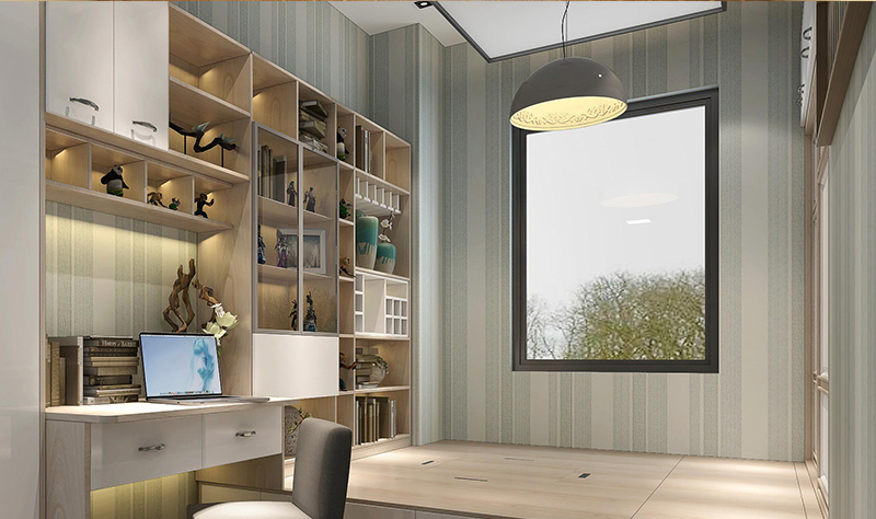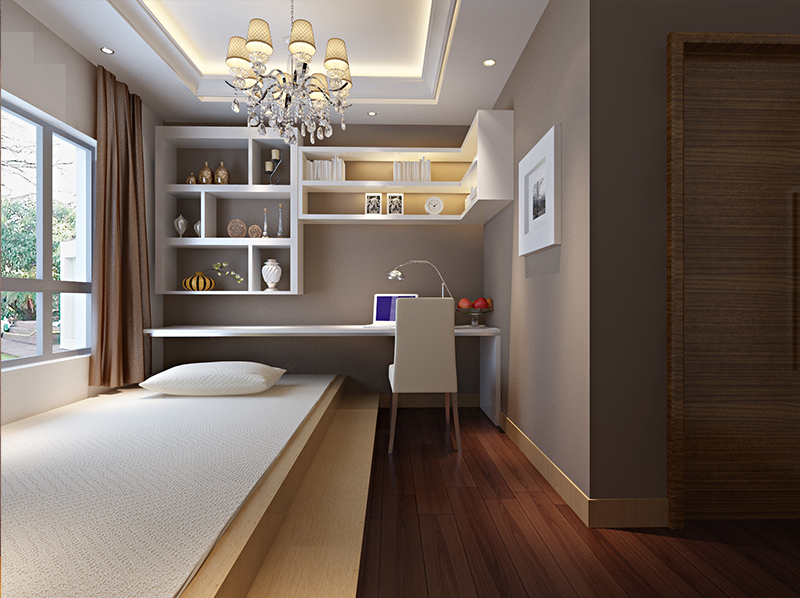 2.書桌書架與榻榻米呈一體式結構,讓整個房間的格調更連貫。