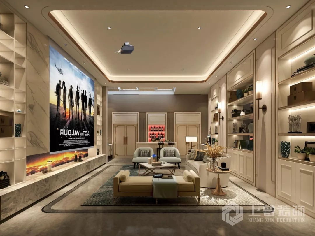 業主對(duì)影音室有一定的需求,所以在考慮這(zhè)個空間的利用上,我們將(jiāng)原先采光不是很好(hǎo)的空間,增加了更多的光源,另一面(miàn)牆設置了酒櫃,給業主營造一個專業的,靜谧的影視休閑空間。可以一家人坐在一起(qǐ)觀賞大片,享受這(zhè)一刻的舒适,更加深層次的把空間合理利用起(qǐ)來,最大程度的把功能(néng)和休閑合理的規劃在一起(qǐ),也顯現出了整個空間的質感與自在。