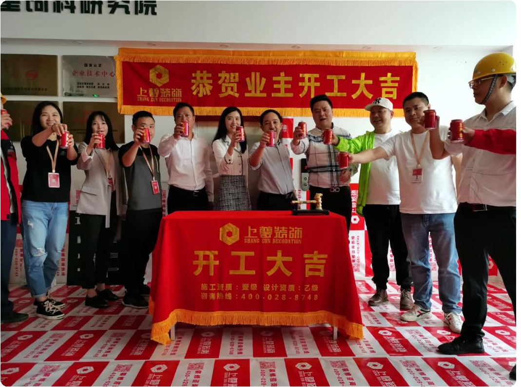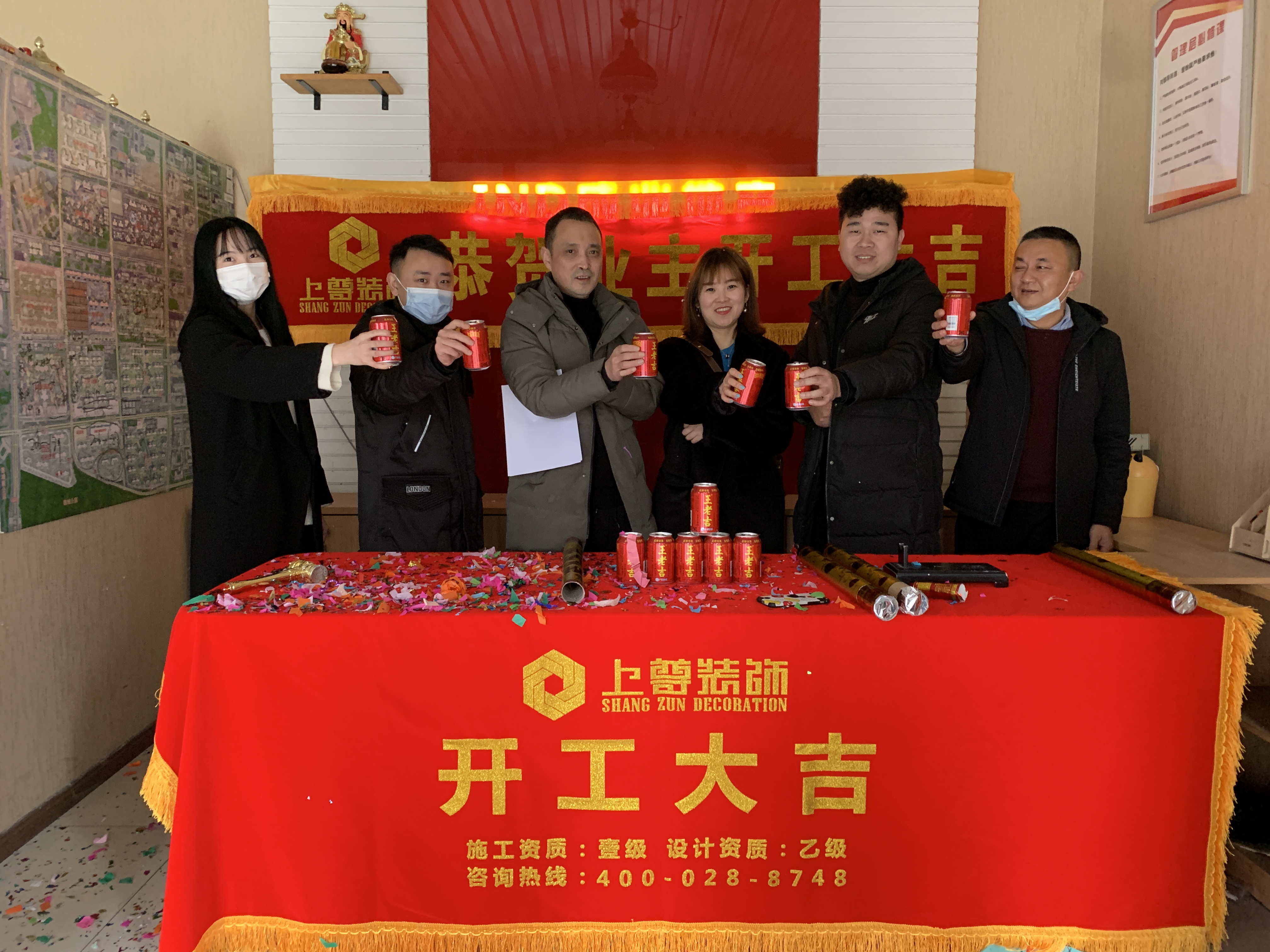 【上尊公裝】鳳凰花開(kāi)KTV開(kāi)工儀式現場,業主代表及我公司代表參與開(kāi)工儀式。承諾爲客戶提供優質的裝修服務。